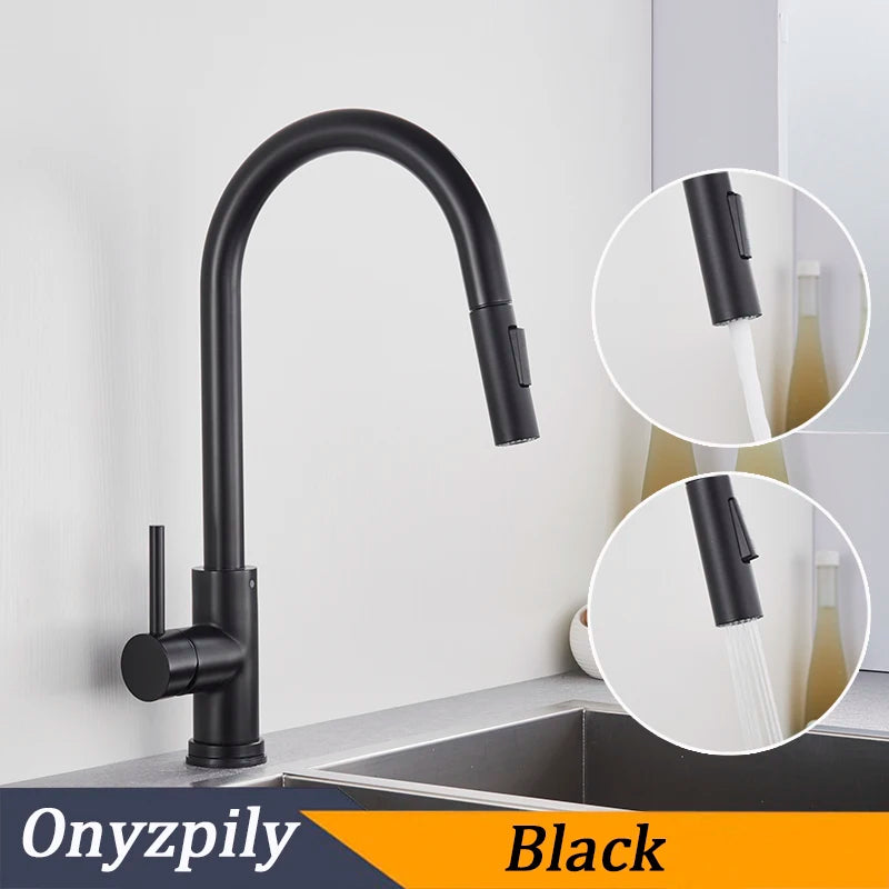 Black Smart Touch Kitchen Faucet Sensor 360 Rotation Pull Out Single Handle Mixer Tap Two Water Modes Sink Crane Hot Cold