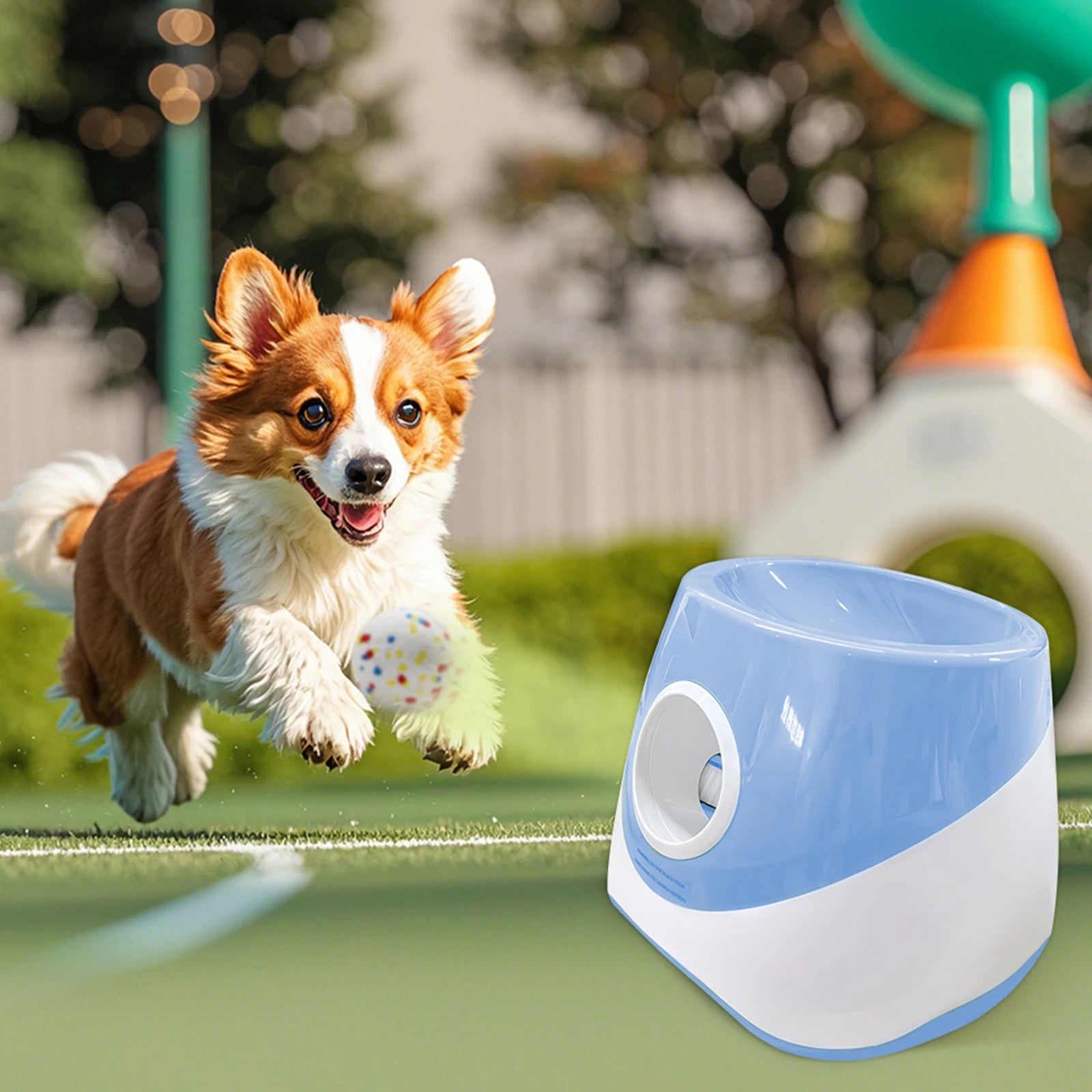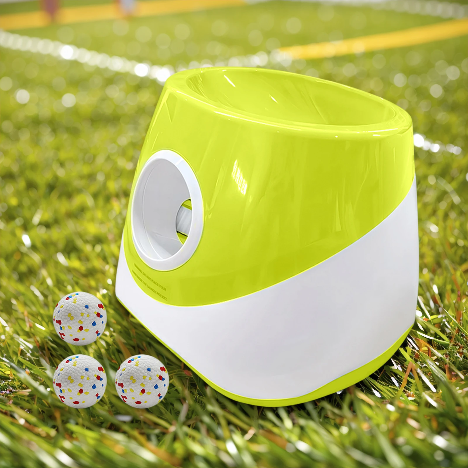Interactive Automatic Ball Launcher with 3 Tennis Balls Automatic Dog Ball Launcher with 3 Distance Rechargeable Small Dog Ball Thrower for Small and Medium-Sized Dogs Features: 1.Endless Fun and Engagement: The interactive automatic ball launcher keeps your dog entertained for hours, continuously tossing balls for boundless excitement and play. This game is sure to become your pet's favorite source of joyful stimulation. 2.Flexible Distance Options: Our dog ball thrower launcher offers three adjustable distance settings of 19.7ft, 32.8ft, and 45.9ft, letting you match your small dog's energy level and play space for a customized playing experience every time. 3.Safe Tennis Ball Set: Specially designed for medium and small dogs, the automatic dog ball launcher comes with three soft, safe 2.3-inch tennis balls to ensure your furry friend enjoys interactive fun in a secure and playful manner. 4.Fitness and Training Anywhere: Ideal for both indoor and outdoor use, the ball thrower machine provides an automatic fetch game that gives you a hands-free way to interact with and train your pet, making daily exercise sessions more enjoyable. 5.Designed for Small and Medium Breeds Only: The rechargeable small dog ball thrower is tailored for petite pups, as the 2.3-inch balls are not suitable for large dogs or breeds with bigger chin.