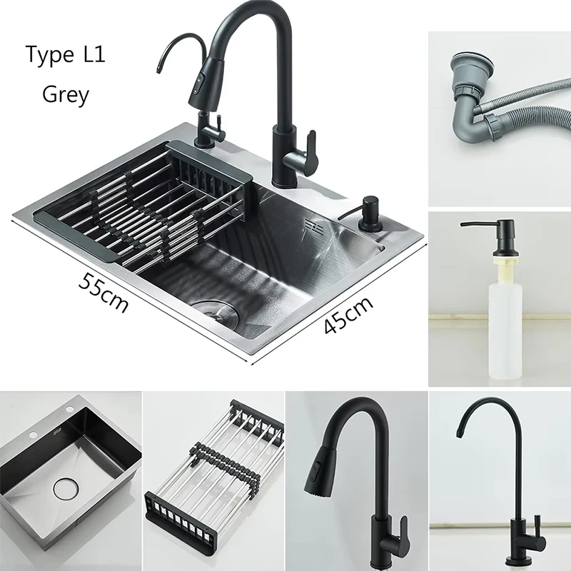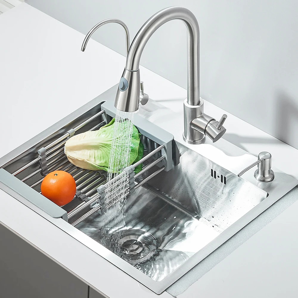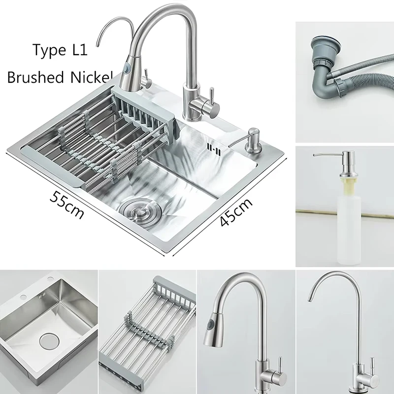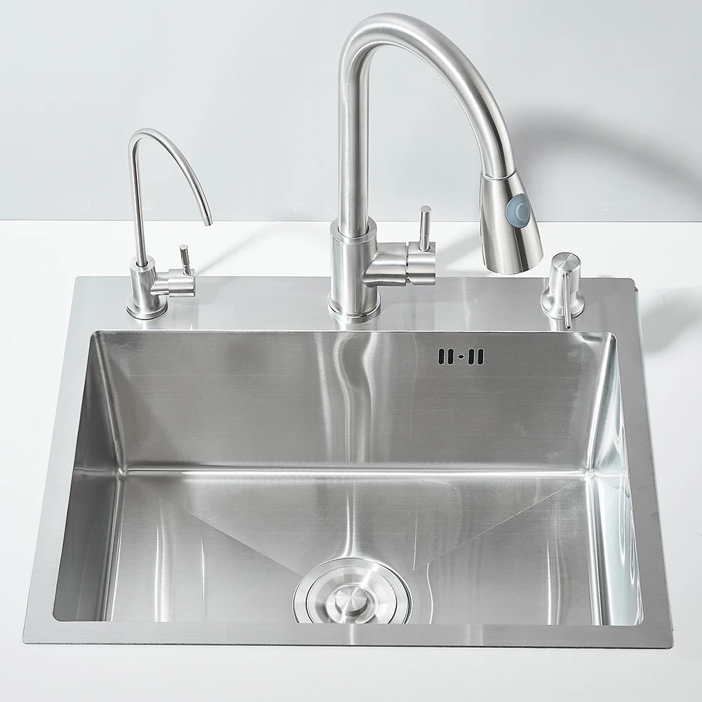 Stainless Steel Kitchen Sink with Faucet Drinking Water Tap/Soap Dispenser 55x45cm Sink Kit with Drain Set/ Basket
